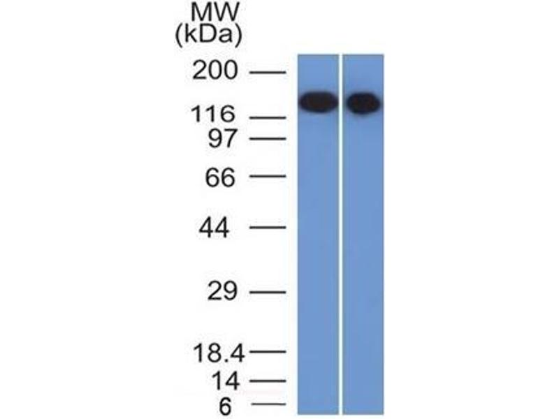 Known Application: ELISA (Use Ab at 2-4 μg/mL for coating) (Order Ab without BSA),Flow Cytometry (1-2 μg/million cells),Western Blot (1-2 μg/mL),Immunofluorescence (1-2 μg/mL),Immunohistochemistry (Formalin-fixed) (1-2 μg/mL for 30 minutes at RT)(Staining of formalin-fixed tissues requires boiling tissue sections in 10 mM Tris buffer with 1 mM EDTA, pH 9.0, for 10-20 min followed by cooling at RT for 20 minutes)Optimal dilution for a specific application should be determined.