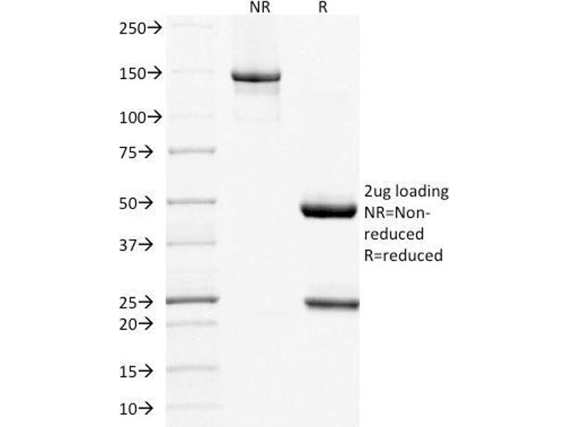 Known Application: Immunohistochemistry (Formalin-fixed) (1-2 μg/mL for 30 minutes at RT)(Staining of formalin-fixed tissues requires boiling tissue sections in 10 mM citrate buffer, pH 6.0, for 10-20 min followed by cooling at RT for 20 minutes)Optimal dilution for a specific application should be determined.