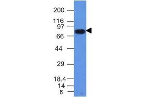 Known Application: Immunofluorescence (1-2 μg/mL), Western Blot (1-2 μg/mL), Immunohistochemistry (Formalin-fixed) (2-4 μg/mL for 30 minutes at RT)(Staining of formalin-fixed tissues requires boiling tissue sections in 10 mM Tris buffer with 1 mM EDTA, pH 9.0, for 10-20 min followed by cooling at RT for 20 minutes)Optimal dilution for a specific application should be determined.
