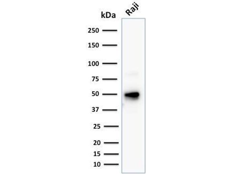 Positive Control: Raji, Daudi or Ramos cells. Germinal center B- cells in a lymph node or tonsil.
