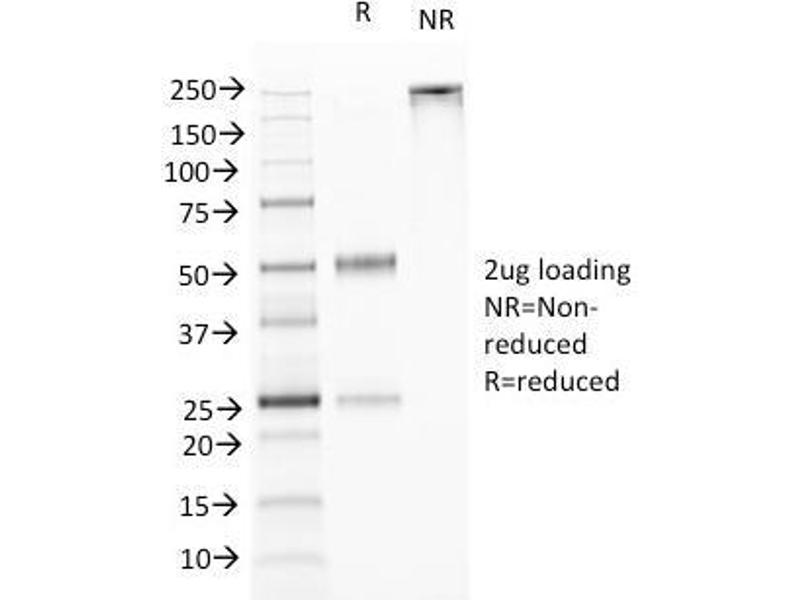 Known Application: Immunohistochemistry (Formalin-fixed) (1-2 μg/mL for 30 minutes at RT)(Staining of formalin-fixed tissues requires boiling tissue sections in 10 mM Tris with 1 mM EDTA, pH 9.0, for 10-20 min followed by cooling at RT for 20 minutes) Optimal dilution for a specific application should be determined.