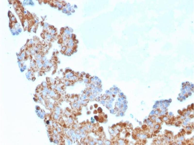 Known Application: Immunohistochemistry (Formalin-fixed) (0.5-1 μg/mL for 30 min at RT)(Staining of formalin-fixed tissues requires boiling tissue sections in 10 mM Citrate Buffer, pH 6.0, for 10-20 min followed by cooling at RT for 20 minutes)Optimal dilution for a specific application should be determined.