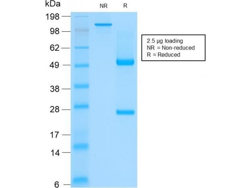 Known Application: Immunohistochemistry (Formalin-fixed) (0.5-1 μg/mL for 30 minutes at RT),(Staining of formalin-fixed tissues requires boiling tissue sections in 10 mM citrate buffer, pH 6.0, for 10-20 min followed by cooling at RT for 20 minutes),Optimal dilution for a specific application should be determined.