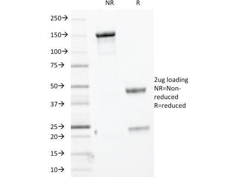 Known Application: Immunohistochemistry (Formalin-fixed) (0.1-0.2 μg/mL for 30 min at RT)(Staining of formalin-fixed tissues requires boiling tissue sections in 10 mM citrate buffer, pH 6.0, for 10-20 min followed by cooling at RT for 20 minutes)Optimal dilution for a specific application should be determined.
