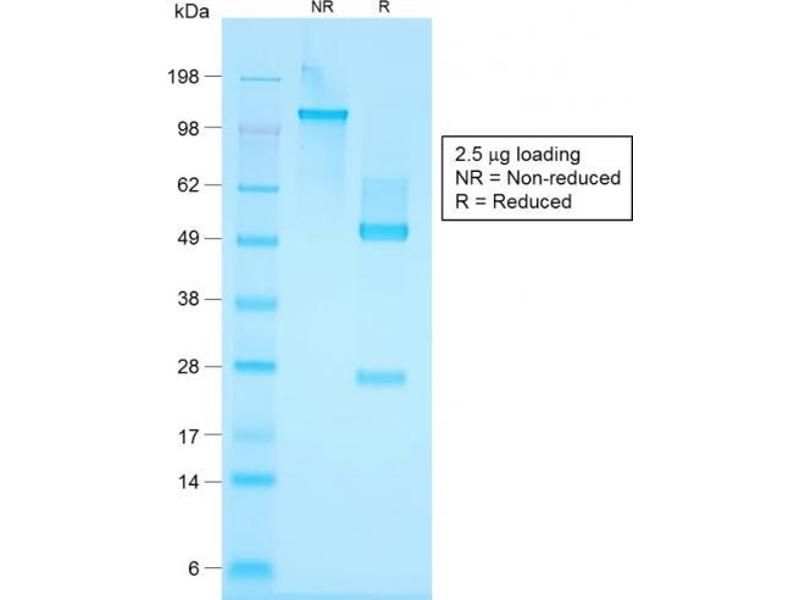 Known Application: Immunohistochemistry (Formalin-fixed) (0.25-0.5 μg/mL for 30 min at RT)(Staining of formalin-fixed tissues requires boiling tissue sections in 10 mM citrate buffer, pH 6.0, for 10-20 min followed by cooling at RT for 20 minutes)Optimal dilution for a specific application should be determined.