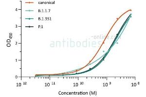 SARS-CoV-2 (COVID-19, 2019-nCoV) Spike antibody can be used for the detection of SARS-CoV-2 (COVID-19, 2019-nCoV) Spike protein in ELISA. It will detect 4 ng of free peptide at 1 μg/mL.