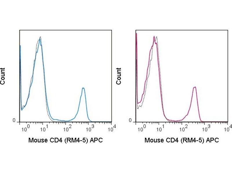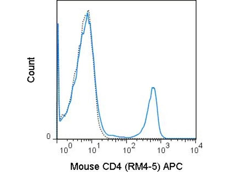 - The RM4-5 antibody reacts with mouse CD4, a 55 kDa protein which acts as a co-receptor for the T cell receptor (TCR) in its interaction with MHC Class II molecules on antigen-presenting cells. The extracellular domain of CD4 binds to the beta-2 domain of MHC Class II, while its cytoplasmic tail provides a binding site for the tyrosine kinase lck, facilitating the signaling cascade that initiates T cell activation. CD4 is typically expressed on thymocytes, certain mature T cell populations such as Th17 and T regulatory (Treg) cells, as well as on dendritic cells.The RM4-5 antibody is widely used as a phenotypic marker for CD4 expression. If used together, the RM4-5 antibody and an alternative antibody, Anti-Mouse CD4 clone GK1.5, will compete for binding, i.e. RM4-5 antibody is able to block GK1.5 antibody binding to cells. In contrast, RM4-5 antibody does not block the binding of Anti-Mouse CD4 clone RM4-4 to cells.