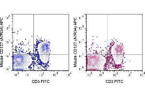 - The A7R34 antibody is specific for mouse CD127, a 60-90 kDa cell surface protein also known as the Interleukin-7 Receptor alpha chain, or IL-7R alpha. CD127 is typically expressed at the cell surface as a heterodimer with the common gamma chain (CD132). This complex acts as the functional receptor for IL-7, a cytokine important in T and B cell development, and in mature T cell homeostasis. A second cytokine known as Thymic Stromal Lymphopoietin (TSLP) also binds to a receptor complex of CD127 and the TSLPR chain to trigger activation of dendritic cells, and is involved in B cell development, allergy and autoimmunity.The A7R34 antibody may be used as a phenotypic marker for CD127 on immature B cells, on subsets of thymocytes which are double negative (CD4-CD8- ) or single positive (CD4+ or CD8+), and at low levels on mature, peripheral T cells. CD127 is a key marker, when used in combination with CD4 and CD25, to distinguish Treg and effector/memory Treg populations known as T(REM).