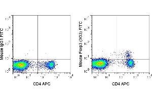 - The 3G3 antibody reacts with mouse Foxp3, a 50-55 kDa transcription factor which is a central regulator of T cell activity and is critical for the development and function of regulatory T cells (Tregs). Foxp3 is expressed at constitutively high levels in Treg cells, which are further identified as being CD4+ CD25+. In resting conventional T cells (CD4+ CD25-) Foxp3 expression is restricted, and upon TCR activation is expressed only transiently and in a small proportion of cells. However, the growth factor TGF-beta has been shown to induce expression of Foxp3 in native T cells, driving their development into Foxp3+ Tregs, which are called induced or adaptive Tregs. These cells are phenotypically similar to so-called natural Tregs (CD4+ CD25high Foxp3+) which originate in the thymus and comprise the majority of Treg cells. Tregs are critical for maintaining peripheral tolerance and are implicated in the development of autoimmunity.It is important to review the literature in choosing an antibody for the Foxp3 antigen in flow cytometry, as the potential for high background or non-specific staining may be observed. The 3G3 antibody may be used for intracellular detection of Foxp3 in cells from mouse and Rhesus macaque.