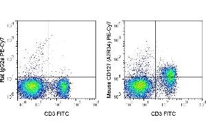 - The A7R34 antibody is specific for mouse CD127, a 60-90 kDa cell surface protein also known as the Interleukin-7 Receptor alpha chain, or IL-7R alpha. CD127 is typically expressed at the cell surface as a heterodimer with the common gamma chain (CD132). This complex acts as the functional receptor for IL-7, a cytokine important in T and B cell development, and in mature T cell homeostasis. A second cytokine known as Thymic Stromal Lymphopoietin (TSLP) also binds to a receptor complex of CD127 and the TSLPR chain to trigger activation of dendritic cells, and is involved in B cell development, allergy and autoimmunity.The A7R34 antibody may be used as a phenotypic marker for CD127 on immature B cells, on subsets of thymocytes which are double negative (CD4-CD8- ) or single positive (CD4+ or CD8+), and at low levels on mature, peripheral T cells. CD127 is a key marker, when used in combination with CD4 and CD25, to distinguish Treg and effector/memory Treg populations known as T(REM).