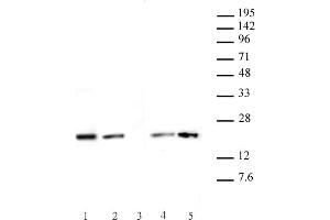 This antibody was raised against a peptide comprising amino acids 21-39 of human Histone H3.1. This region is 100% identical in human Histone H3.2.