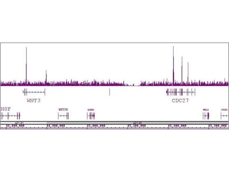 - TCF3 / TCF7L1 (T-cell factor 3, TCF7L1) is a member of the TCF/LEF family and a component of the Wnt signaling pathway and a dominant downstream effector in embryonic stem cells (ESCs). TCF3 binds to DNA and serves as both a repressor as well as an activator of transcription. TCF3 brings developmental signals directly to the core regulatory circuitry of ES cells to influence the balance between pluripotency and differentiation. TCF3 transcriptionally represses many genes important for maintaining pluripotency and self-renewal, as well as those involved in lineage commitment and stem cell differentiation. This effect is in part mediated by the corepressors transducin-like enhancer of split 2 (TLE2) and C-terminal Binding Protein (CtBP). TCF7L1 / TCF3 antibody (pAb) was raised in a Rabbit host. It has been validated for use in Chromatin Immunoprecipitation, ChIP-Seq and Western blot, it has been shown to react with Human samples.
