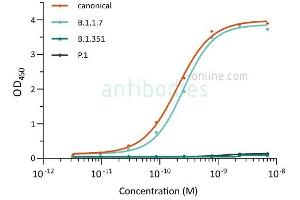 - ABIN6990085 recognizes the S proteins from wt SARS-CoV-2 and variant B.1.1.7 alpha; the antibody does not bind S proteins from variants B.1.351 beta and P.1 gamma.