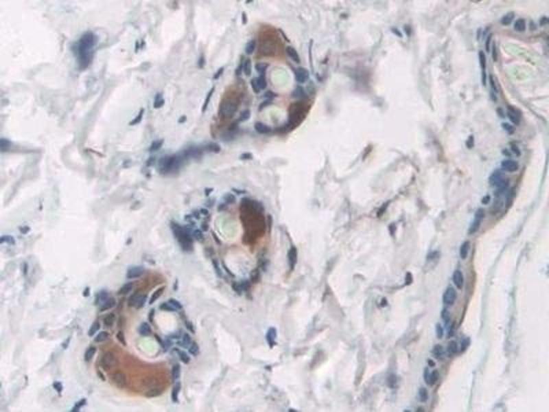 - Western blotting: 0.5-2 μg/mL,Immunocytochemistry in formalin fixed cells: 5-20 μg/mL,Immunohistochemistry in formalin fixed frozen section: 5-20 μg/mL,Immunohistochemistry in paraffin section: 5-20 μg/mL,Enzyme-linked Immunosorbent Assay: 0.05-2 μg/mL,Optimal working dilutions must be determined by end user.