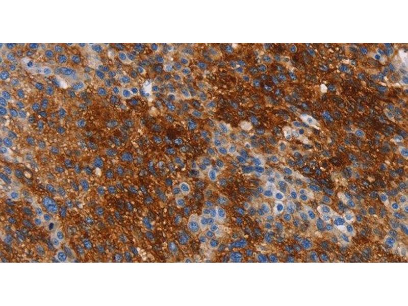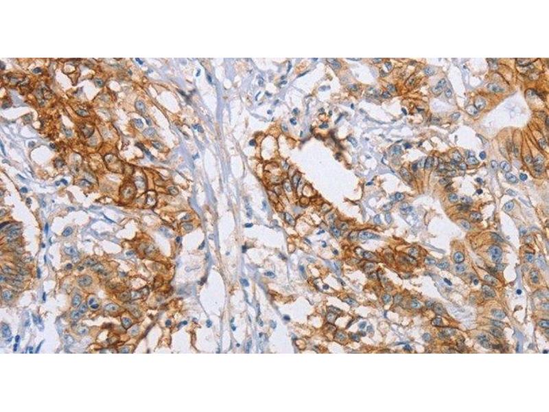 Carbonic anhydrases (CAs) are a large family of zinc metalloenzymes that catalyze the reversible hydration of carbon dioxide. They participate in a variety of biological processes, including respiration, calcification, acid-base balance, bone resorption, and the formation of aqueous humor, cerebrospinal fluid, saliva, and gastric acid. They show extensive diversity in tissue distribution and in their subcellular localization. CA IX is a transmembrane protein and the only tumor-associated carbonic anhydrase isoenzyme known. It is expressed in all clear-cell renal cell carcinoma, but is not detected in normal kidney or most other normal tissues. It may be involved in cell proliferation and transformation.