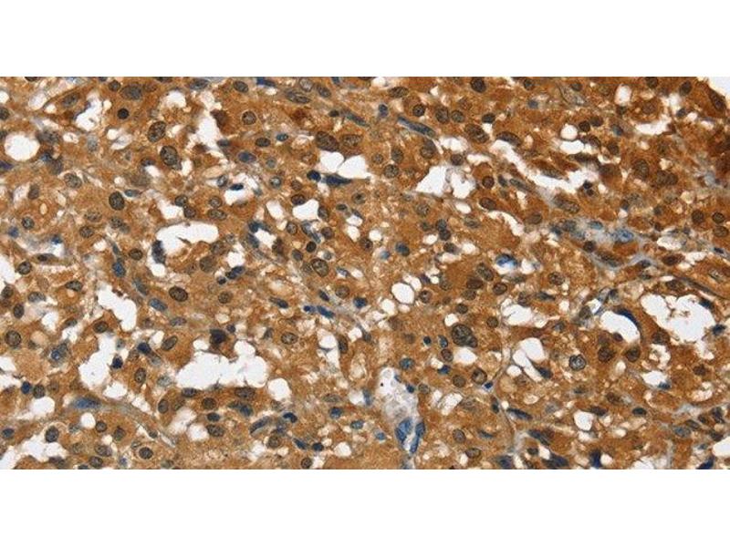 The full-lengthSTK17BcDNA clone encodes a deduced 372-amino acid protein with a molecular mass of 42.34 kD. The putative kinase domain is located at the N terminus and contains all 11 subdomains conserved among ser/thr kinases. STK17A andSTK17Bshare 59.7 % amino acid identity.Northern blot analysis revealed that STK17B was expressed in various tissues, such as heart, placenta, liver, and pancreas, as different-sized transcripts, presumably due to differences in the 3-prime untranslated region. Transient transfection of COS-7 cells showed that STK17B localized in nuclei. Phosphorylates myosin light chains. Acts as a positive regulator of apoptosis.