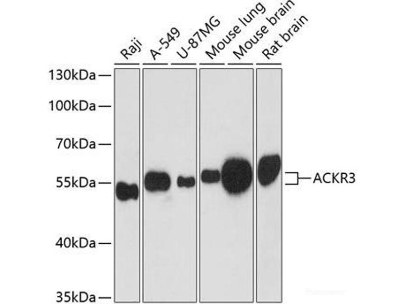 The Rabbit Polyclonal anti-CXCR7 antibody has been validated for WB. It is suitable to detect CXCR7 in samples from Human, Rat and Mouse.