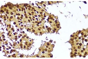 Telomerase is a ribonucleoprotein polymerase that maintains telomere ends by addition of the telomere repeat TTAGGG. The enzyme consists of a protein component with reverse transcriptase activity, encoded by this gene, and an RNA component which serves as a template for the telomere repeat. Telomerase expression plays a role in cellular senescence, as it is normally repressed in postnatal somatic cells resulting in progressive shortening of telomeres. Deregulation of telomerase expression in somatic cells may be involved in oncogenesis. Studies in mouse suggest that telomerase also participates in chromosomal repair, since de novo synthesis of telomere repeats may occur at double-stranded breaks. Alternatively spliced variants encoding different isoforms of telomerase reverse transcriptase have been identified, the full-length sequence of some variants has not been determined. Alternative splicing at this locus is thought to be one mechanism of regulation of telomerase activity.