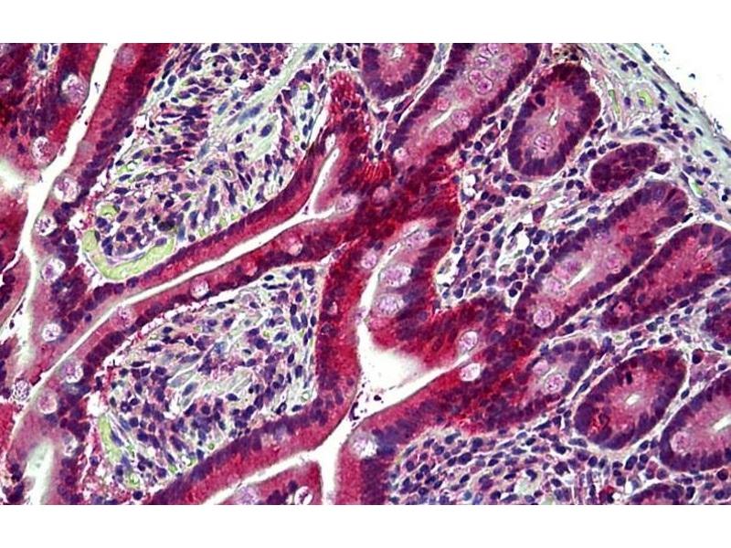 Immunohistochemistry: Paraffin embedded Human Small Intestine and Brain (Cerebellum). Recommended concentration: 3.75 μg/mL.