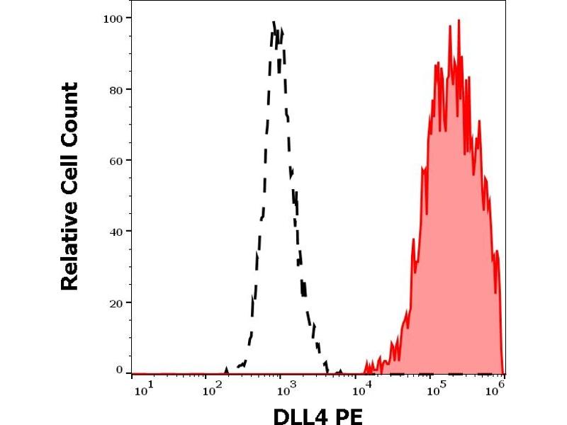 The mouse monoclonal antibody MHD4-46 recognizes the extracellular domain of DLL4 (Delta-like ligand 4), a type I transmembrane protein which plays an important role in vascular development.