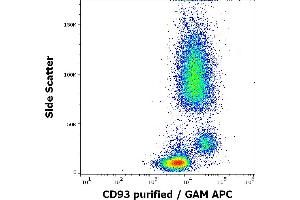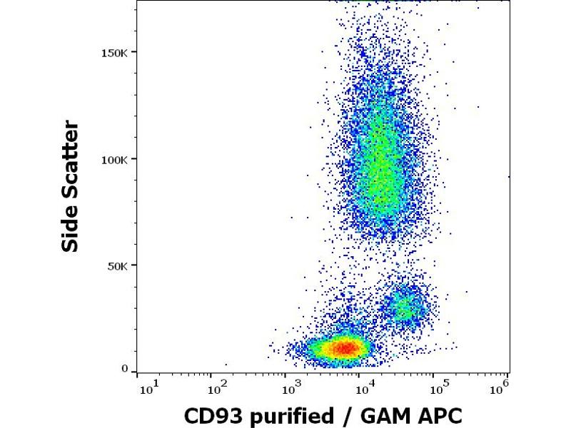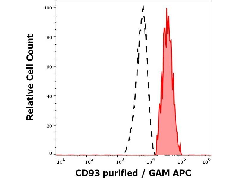 The mouse monoclonal antibody VIMD2 recognizes an extracellular epitope on CD93, an approximately 110-120 kDa glycoprotein expressed mainly on myeloid cells and endothelial cells.