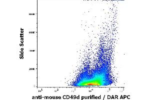 Integrin subunit alpha 4,CD49d (integrin alpha 4), also known as very late antigen 4 alpha (VLA-4 alpha) is a cell surface glycoprotein constituting integrin complexes. CD49d heterodimerizes with CD29 (integrin beta 1) to form VLA-4 antigen, which is involved in cell-cell and cell-extracellular matrix interactions, which is a receptor for CD106 (VCAM) and fibronectin. CD79d also heterodimerizes with integrin beta 7 to form LPAM-1, which binds to MAdCAM-1 (mucosal vascular addressin). These interactions are important for cell adhesion and activation.,Itga4, Vla-4 alpha