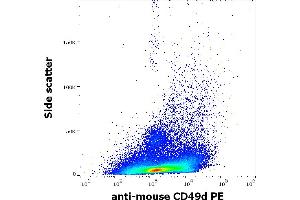 The rat monoclonal antibody R1-2 recognizes an extracellular epitope of murine CD49d / Integrin alpha 4 (VLA-4 alpha), an approximately 150 kDa glycoprotein of the integrin family, expressed on multiple blood cell types.