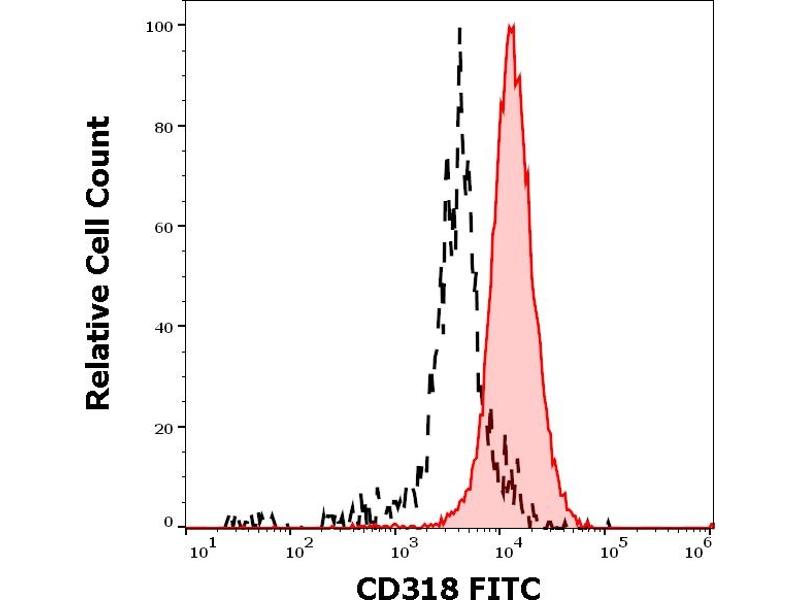 The mouse monoclonal antibody CUB1 recognizes an extracellular epitope of CD318, a type I transmembrane protein involved in early hematopoiesis.