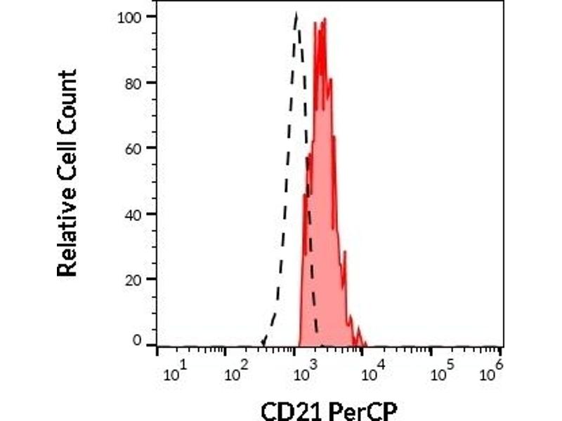 The antibody LT21 reacts with an extracellular epitope of CD21 (CR2), a 145 kDa transmembrane glycoprotein (complement C3d receptor - C3dR) expressed on B lymphocytes, follicular dendritic cells, some epithelial cells and a subsets of T lymphocytes. It is not expressed on immature B cells.