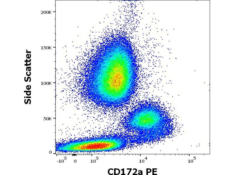 The mouse monoclonal antibody 15-414 recognizes en extracellular epitope of CD172a (SIRP alpha), an approximately 90 kDa transmembrane glycoprotein expressed on cells of myeloid origin and neurons.
