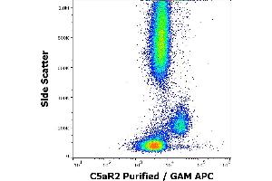 The mouse monoclonal antibody 1D9-M12 recognizes an extracellular epitope on C5aR2 (C5L2), a C5a complement receptor, which is coexpressed with C5aR1 (CD88) in neutrophils, as well as e.g. in mast cells, astrocytes, or macrophages.