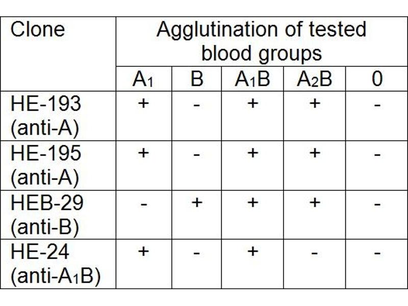 - The antibody HE-193 recognizes human blood group A (monofucosyl and difucosyl A antigens with chain types 1 and 2, A antigens with chain types 3, 4, 5, 6) and Forssman antigen.