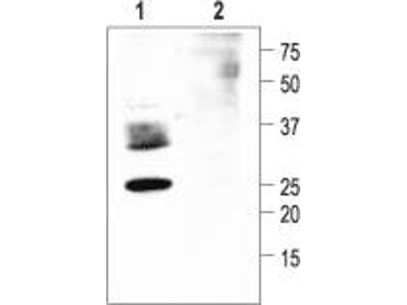 AQP2, AQP-CD, WCH-CD,Aquaporin 2 (AQP2) belongs to a family of membrane proteins that allow passage of water and certain other solutes through biological membranes. The family is composed of 13 members (AQP0 to AQP12). Little is known about the function of the two newest members, AQP11 and AQP12.The aquaporins can be divided into two functional groups based on their permability characteristics: the aquaporins that are only permeated by water and the aquaglyceroporins that are permeated by water and other small solutes such as glycerol. AQP2 together with AQP1, AQP4 and AQP5 belongs to the first group.1The proteins present a conserved structure of six transmembrane domains with intracellular N- and C-termini. The functional channel is a tetramer but each subunit has a separate pore and therefore the functional channel unit, contains four pores.1AQP2 expression is largely confined to the kidney, particularly in the renal collecting duct where it performs a key role in water absorption and urine concentration. In fact, mutations in the AQP2 gene produce hereditary nephrogenic diabetes insipidus, a disorder that results in the excretion of large volumes of urine.2Under normal conditions, water homeostasis in the kidney is regulated through the anti-diuretic hormone vasopressin. Vasopressin is secreted from the pituitary gland and transported to the kidney through the blood where it binds to its receptor that is mainly expressed in cells of the collecting duct. The activated vasopressin receptor induces an increase in intracellular cAMP and subsequent PKA activation, which phosphorylates AQP2. This phosphorylation causes the translocation of AQP2 channels from intracellular vesicles to the cell membrane where it markedly increases water permeability.1,3,4