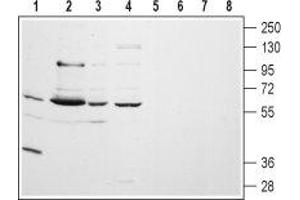 Muscarinic acetylcholine receptor M5, Cholinergic receptor muscarinic 5, mAChR M5, HM5,Acetylcholine is a neurotransmitter which activates two different groups of receptors: nicotinic acetylcholine receptors (nAChR) which belong to the superfamily of ligand-gated ion channels, and muscarinic acetylcholine receptors (mAChR) which belong to the G-protein coupled receptor (GPCR) superfamily. There are five separate gene products (M1-M5) that, assembled, make up this GPCR subfamily and like all GPCRs, have seven transmembrane spanning domains.Generally, M1, M3 and M5 muscarinic receptors are known to activate phospholipase C (PLC) via Gq coupling, while M2 and M4 muscarinic receptors couple to Gi/o, and therefore inhibit adenylate cyclase1. This classification is however not clear cut.mAChR can activate adenylate cyclase by coupling to Gs2. In addition, M2 and M4 muscarinic receptors, when overexpressed, can also activate adenylate cyclase in some systems3-5.Evidence suggests that muscarinic receptors can form homo- or heterodimers and that the dimer formed can subsequently affect the downstream signaling pathways1.Muscarinic receptors have been shown to regulate voltage-gated Ca2+ channels, namely CaV2.16, as well acid sensing ion channels (ASIC)7. Generally speaking, the actions of muscarinic receptors on ion channels can be either via 2nd messengers or through their direct action on the channels once activated8.Furthermore, muscarinic receptors can also promote endocytosis of ion channels (KV1.2 for example) by recruiting tyrosine kinases that phosphorylate the channel in order to terminate its activity9. Other diverse and important functions of muscarinic receptors include cell growth, survival and physiology1.Expression of muscarinic receptors is found in neurons in the central nervous system as well as in the peripheral nervous system. These receptors are also expressed in cardiac and smooth muscle, lung, intestine, ovary and urothelium1,10.The M5 muscarinic receptor has been the most difficult receptor to study as there is no specific pharmacology targeted against the receptor and no high level of expression has been detected in tissues. However, the effects of single knockout mice were studied and it was observed that in M5 knockouts there is a moderate decrease in ligand binding in the lung and bladder, two organs expressing the M5 muscarinic receptor11. In addition, it has been proposed that the M5 muscarinic receptor may be involved in interstitial cystitis, a urinary bladder disorder12.