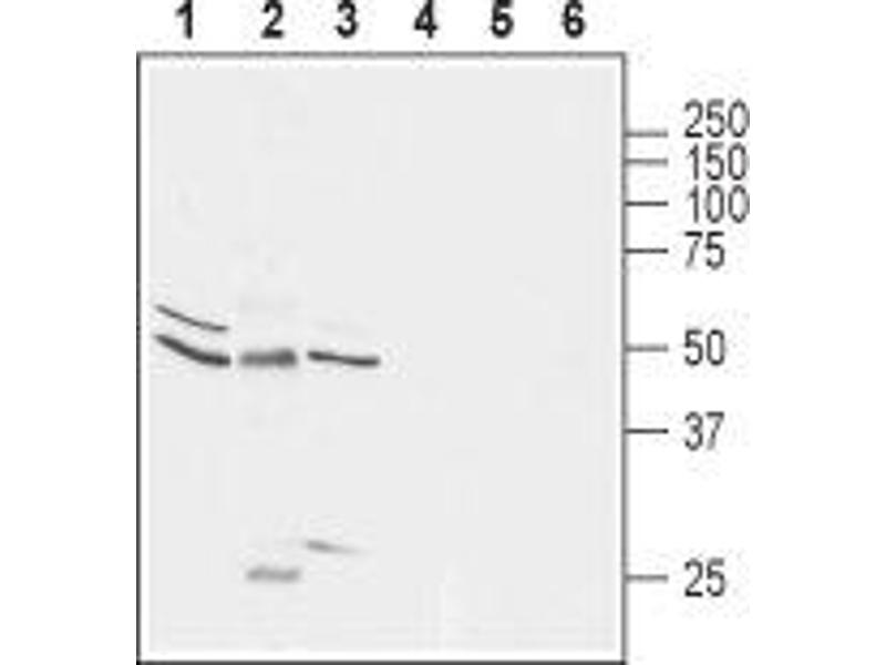 Glycine receptor subunit alpha-1, Glycine receptor 48 kDa subunit, Glycine receptor strychnine-binding subunit, GLRA1, Glyr,Glycine receptors (GlyRs) mediate ionotropic inhibitory neurotransmission in the CNS where they play an essential role in inhibition of motor neurons in the spinal cord and brainstem1. The glycine receptor is composed of three ligand-binding subunits of 48 kDa (α) and two homologous polypeptides of 58 kDa (β) that span the postsynaptic membrane in a pentameric arrangement to form a Cl--selective channel2. So far, at least three different α-subunit variants of the GlyR have been identified: α1, α2 and α33. Homo-oligomeric α2 receptors have a low strychnine-binding affinity and are considered to represent a neonatal form of GlyR, which is replaced during development by receptors containing the α1 subunit. Adult GlyRs are predominantly composed of α1 and β subunits, the α3 subunit being expressed at low levels in only a few brain regions4.GlyRα1 subunits are widely expressed and contribute to many processes in the CNS, including inflammatory pain perception, modulation of auditory and visual pathways, and neurotransmission in the cerebellar cortex5.Mutations in glycine receptor α1 subunits cause human hereditary hyperekplexia, a disorder characterized by an exaggerated startle response, which is a consequence of the role of GlyRs in motor reflex circuits of the spinal cord6.