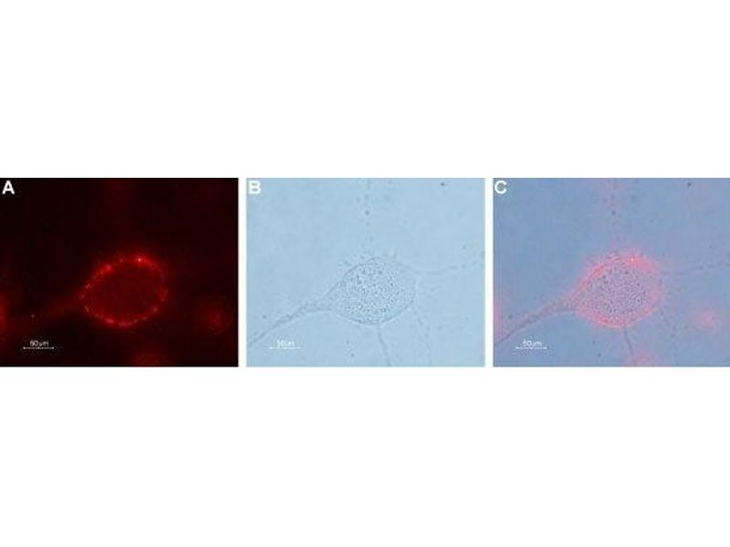 PANX2, PX2, hPANX2,Gap junctions are usually found in clusters and enable intercellular communication by allowing the passage of small molecules between cells1. They play important roles in different biological processes. These include differentiation, cell cycle synchronization, cellular development, neuronal activity and the immune response2-4.Proteins involved in gap junction formation are composed of four transmembrane domains, two extracellular loops and one intracellular loop and intracellular N- and C-termini5,6. Several consensus cysteine residues are in the extracellular loop and are essential and necessary for intercellular docking of gap junction hemichannels in the opposing cell membrane5-7.Pannexins (Pannexin 1, Pannexin 2 and Pannexin 3) belong to the superfamily of gap junction proteins. Pannexin 1 (PANX1) is ubiquitously expressed, Pannexin 2 (PANX2) is specifically expressed in the human brain and widespread in rodents and Pannexin 3 (PANX3) is also detected in the brain8.The gating properties of Pannexins were studied in Xenopus oocytes and results demonstrate that only PANX1 is able to form homomeric hemichannels, and is also able to form heteromeric hemichannels with PANX2 but not with PANX39,10. Not surprising, PANX1 gating properties depend whether it forms homomeric or heteromeric hemichannels.A number of different stimuli are known to open these channels and include mechanical stress, extracellular ATP, increases in intracellular Ca2+ and inflammation9.Possible roles for Pannexins include paracrine signaling in vascular endothelial cells and taste cell signaling9.