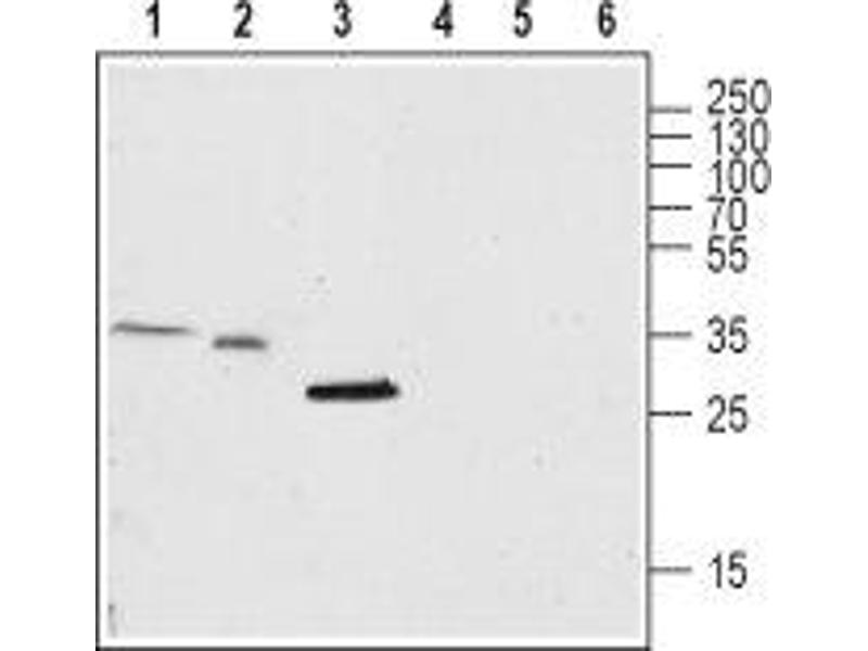 Trimeric intracellular cation channel type A, 27 kDa sarcoplasmic reticulum protein, Transmembrane protein 38A,Intracellular Ca2+ levels are important in proper cellular functions and have prominent roles in various cell signaling pathways and are crucial for muscle contractions. Indeed, an important step leading to muscle contraction is the massive release of Ca2+ ions from the endoplasmic/sarcoplasmic reticulum (ER/SR) to the cytosol. A battery of results suggest that specific K+ channels are important to counteract the Ca2+ outflow in order to neutralize the negative potential created by the movement of Ca2+ ions. It is believed that TRIC channels are responsible for neutralizing this negative potential1,2.Trimeric intracellular cation-specific (TRIC) channels are critical for proper management of intracellular stores. TRIC-A and TRIC-B both belong to this family and are both permeable to monovalent ions with a preference for K+ 3. Both channels are localized to the ER/SR membrane. Each TRIC subunit contains three transmembrane domains, a cytoplasmic C-terminus and a luminal N-terminus. Functional entities are formed by homotrimerizarion4. The activity of TRIC-A is regulated by voltage whereas that of TRIC-B can be regulated by different mechanisms3.Knockout studies of these channels have shown that TRIC-A knockout mice are viable while those of TRIC-B die at the neonatal stage5.TRIC-A is mostly expressed in excitable tissues like the brain and muscle while TRIC-B is ubiquitously expressed.
