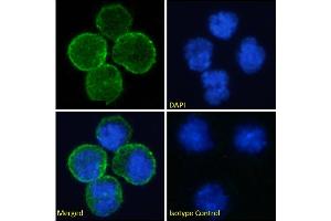 - ch5D12 is an antagonist of the CD40-CD40L pathway. ch5D12 binds to B cells and monocytes, but not to peripheral blood CD4+ and CD8+ cells. ch5D12 was tested in vivo using a marmoset EAE (experimental autoimmune encephalomyelitis) model (recombinant myelin oligodendrocyte glycoprotein (MOG) was used to induce EAE) - model for human multiple sclerosis. ch5D12 was able to prevent development of the symptoms of the disease during the treatment period, reduce the anti-MOG antibody response and reduce the formation of inflammatory lesions in the CNS. ch5D12 binding and specificity can be detected and measured by FC, SPR, ELISA and IP, and CD40+ cells can be stained by the antibody in IHC.