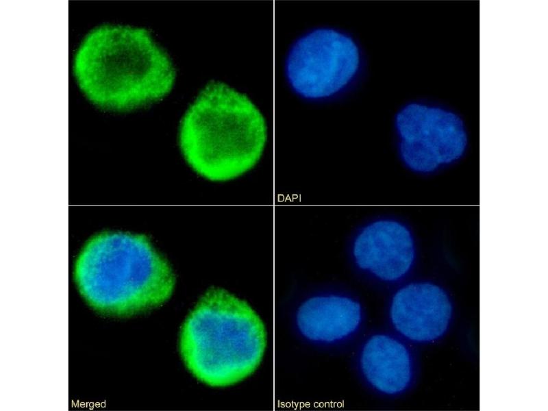 - 5C12 is recommended for the detection and analysis of expression of MS4A4A. Importantly, MS4A4A has been shown to be a marker for M2 macrophages and plasma cells and to be overexpressed in multiple myelomas, suggesting a potential role in targeting alternatively activated macrophages such as tumor-associated macrophages, and in the treatment of multiple myeloma and mantle cell lymphoma (Sanyal et al., 2017, pmid: 28303902). The antibody 5C12 can be successfully used for the detection of MS4A4A-expressing cells via flow cytometry (Sanyal et al., 2017, pmid: 28303902). Finally, specificity of this antibody was additionally confirmed via immunoprecipitation of lysates of BJAB MS4A4A-HA cells (Sanyal et al., 2017, pmid: 28303902).