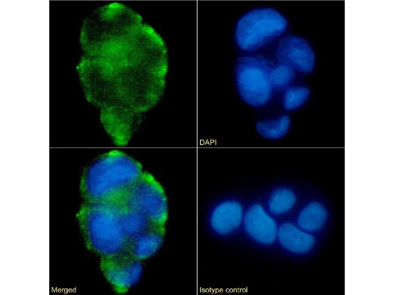 - This antibody was raised by immunising mice with human carcinoma cells.