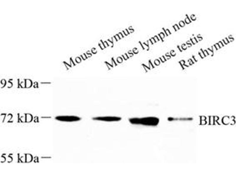 The Rabbit Polyclonal anti-BIRC3 antibody (ABIN7073179) specifically detects BIRC3 in WB, IHC and IF.