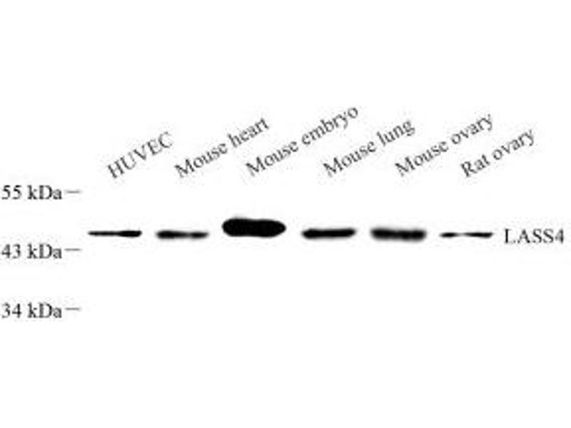 - LASS4 is a member of the LASS (longevity assurance homologue) family which are involved in determining life span in yeast, by an unknown molecular mechanism. Members of this family are highly conserved from yeasts to mammals.LASS proteins are thought to be involved in ceramide synthesis. Overproduction of a single LASS protein results in an increase in one or more specific ceramide species, which differ in fatty-acid chain length. LASS proteins possess specific fatty acyl-CoA preferences, but all can use sphingosine or dihydrosphingosine as the long-chain base substrate. LASS family members exhibit different tissue-specific expression patterns, which may contribute to the production of tissue-specific ceramides.
