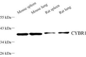 The Rabbit Polyclonal anti-Cytochrome B Reductase 1 antibody has been validated for WB. It is suitable to detect Cytochrome B Reductase 1 in samples from Mouse and Rat.