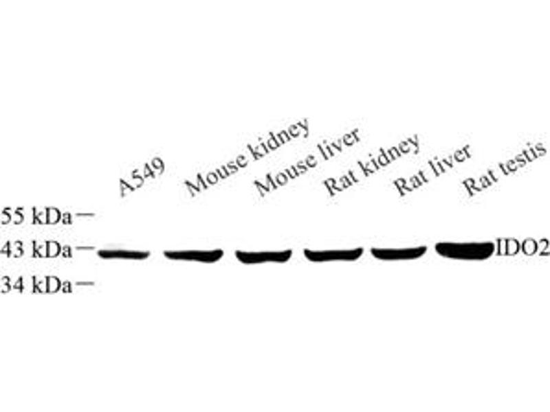 IDO2, also named as INDOL1, catalyzes the first and rate-limiting step in the kynurenine pathway of tryptophan catabolism. IDO2 gene has two isoforms with MW 45 kDa and 20 kDa.Along with the enzymes encoded by the INDO and TDO2 genes, the enzyme encoded by the INDOL1 gene metabolizes tryptophan in the kynurenine pathway.