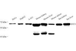 IFIT3 (IFN-induced protein with tetratricopeptide repeats 3), also known as IFIT-4, ISG-60 or RIG-G, is a 56 kDa IFN induced protein. IFIT3 has been identified to be associated with strong IFN antiviral activity. Upon RNA virus infection, IFIT3 is significantly induced, ectopic expression or knockdown of IFIT3 could, respectively, enhance or impair IFN regulatory factor 3 (IRF3)-mediated gene expression. IFIT3 thus may serve as an important modulator in innate immunity, revealing a new function of the IFIT family proteins.