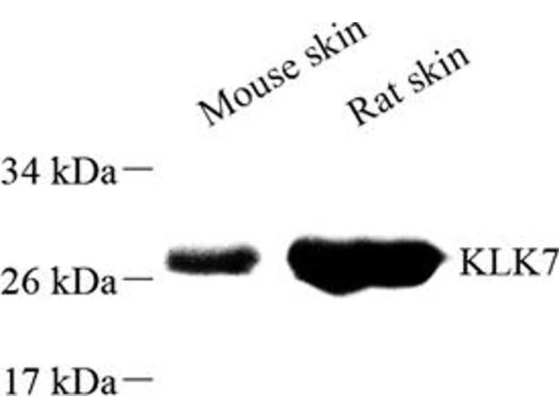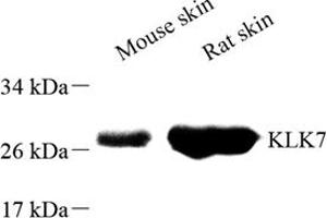 The Rabbit Polyclonal anti-Kallikrein 7 antibody has been validated for IHC and IF. It is suitable to detect Kallikrein 7 in samples from Rat and Mouse.