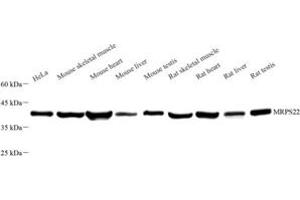MRPS22, also named as C3orf5, RPMS22 and S22mt, is a component of the mitochondrial ribosome small subunit (28S) which comprises a 12S rRNA and about 30 distinct proteins. Defects in MRPS22 are the cause of combined oxidative phosphorylation deficiency type 5 (COXPD5). MRPS22 is a 360-amino-acid protein that has been found in a limited number of species, having no ortholog in fungi or prokaryotes. The exact location of MRPS22 in the three dimensional structure of the ribosome and its exact function are currently unknown. Recently, a MRPS22 defect was shown to strongly hamper assembly of the small ribosomal subunit, whereas assembly of the large subunit and part of the small subunit were only mildly affected.