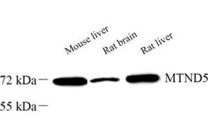 This Rabbit Polyclonal antibody specifically detects MT-ND5 in WB, IHC and IF. It exhibits reactivity toward Human, Rat and Mouse.