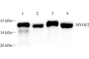 Myozenins may serve as intracellular binding proteins involved in linking Z line proteins such as alpha-actinin, gamma-filamin, TCAP/telethonin, LDB3/ZASP and localizing calcineurin signaling to the sarcomere. Plays an important role in the modulation of calcineurin signaling. May play a role in myofibrillogenesis.