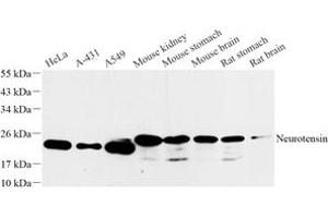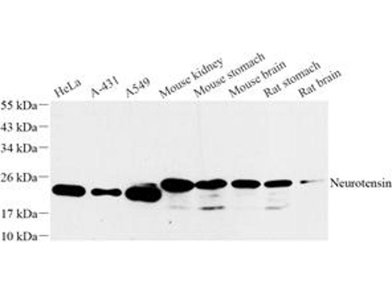 Neurotensin is distributed throughout the central nervous system, with highest levels in the hypothalamus,amygdala and nucleus accumbens. It induces a variety of effects, including analgesia, hypothermia and increased locomotor activity. It is also involved in regulation of dopamine pathways. In the periphery, neurotensin is found in enteroendocrine cells of the small intestine, where it leads to secretion and smooth muscle contraction.